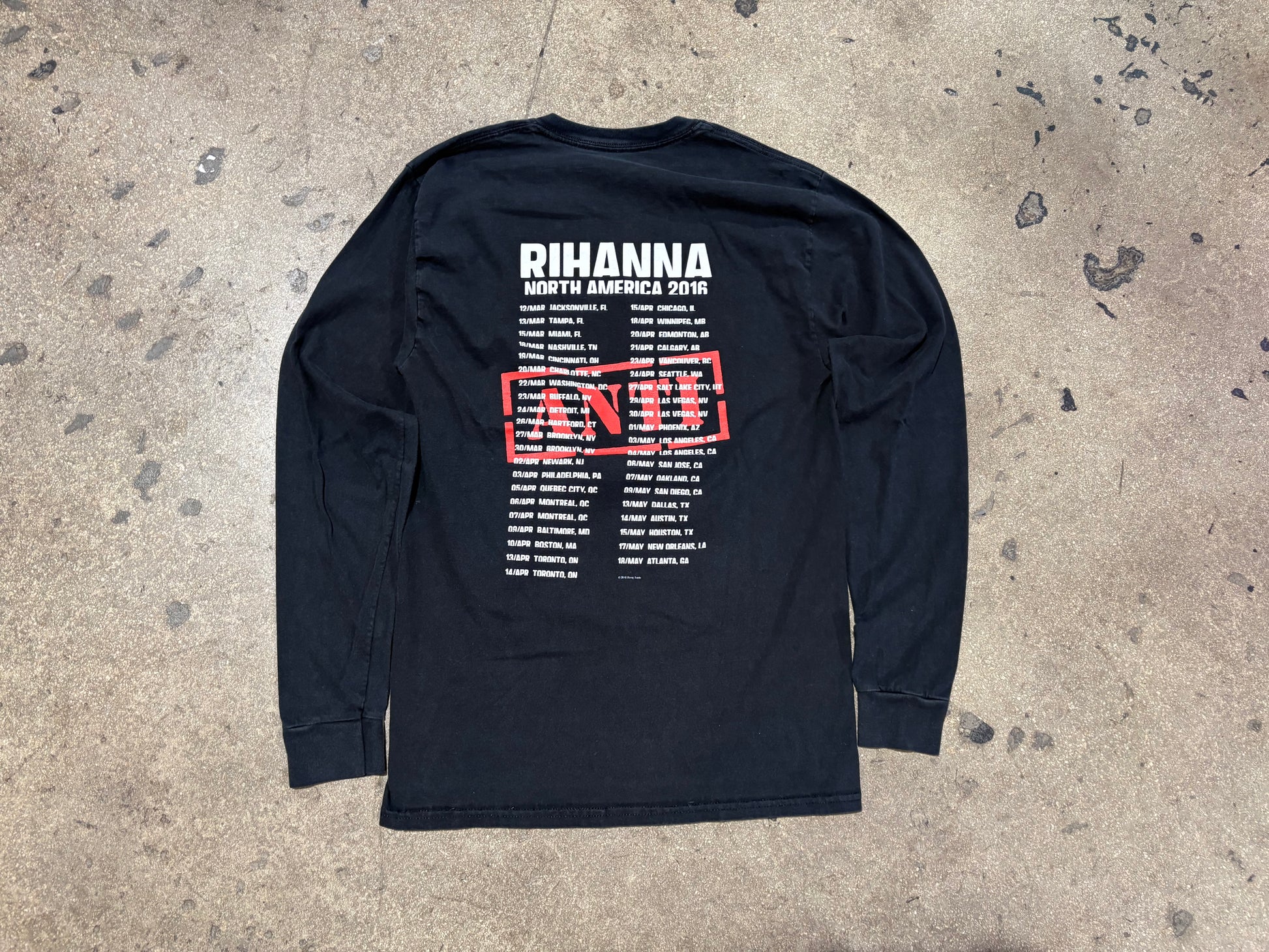 2016 Rihanna Anti Tour Long Sleeve Tee - Black Size Medium