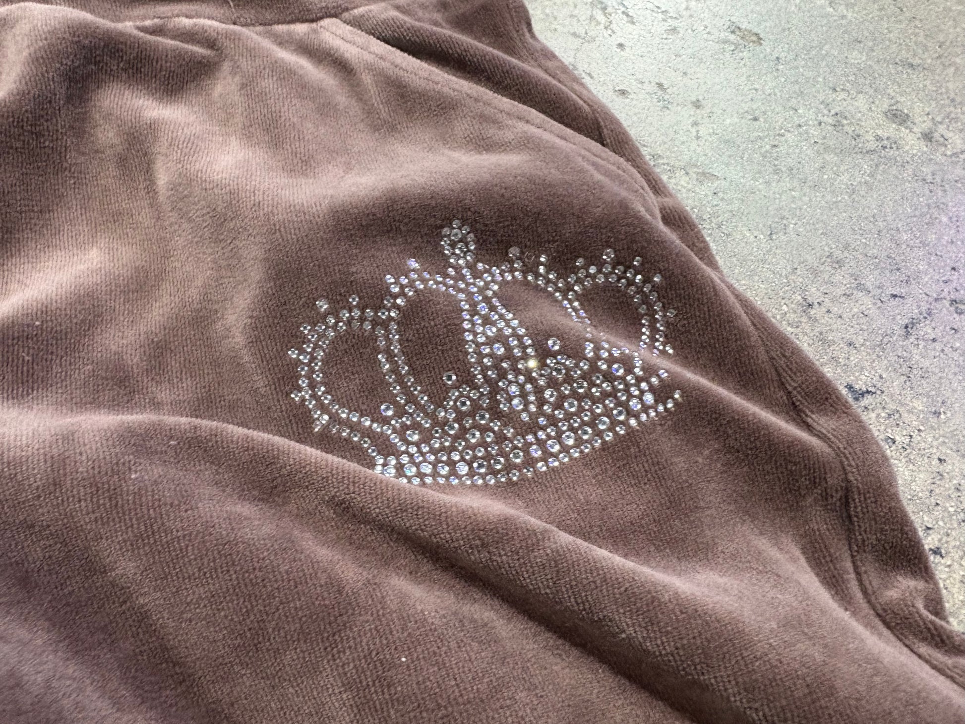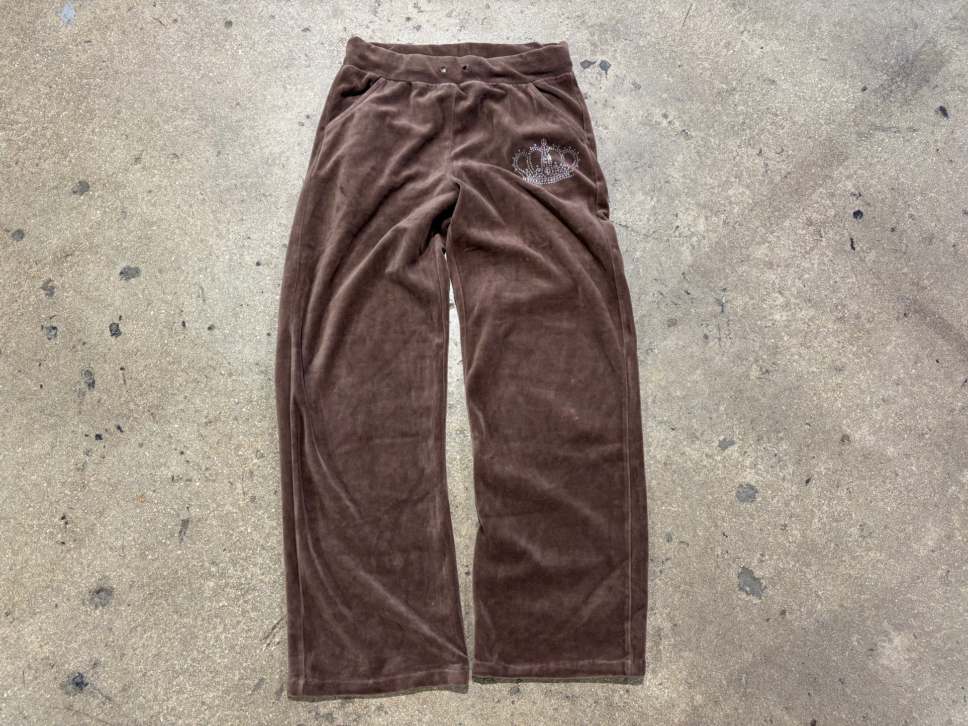 Crown Bedazzled Velour Sweatpants - Brown Size Medium