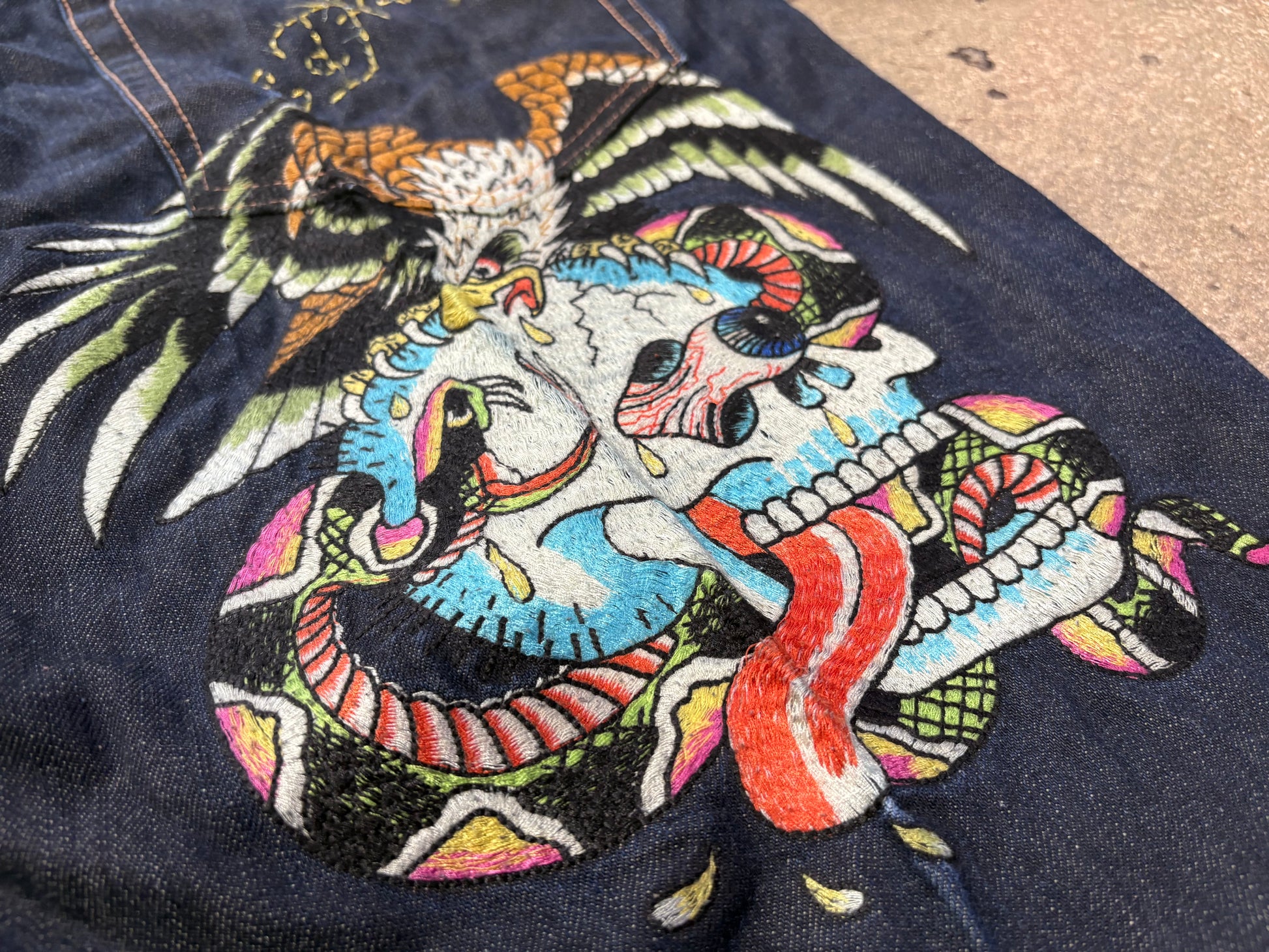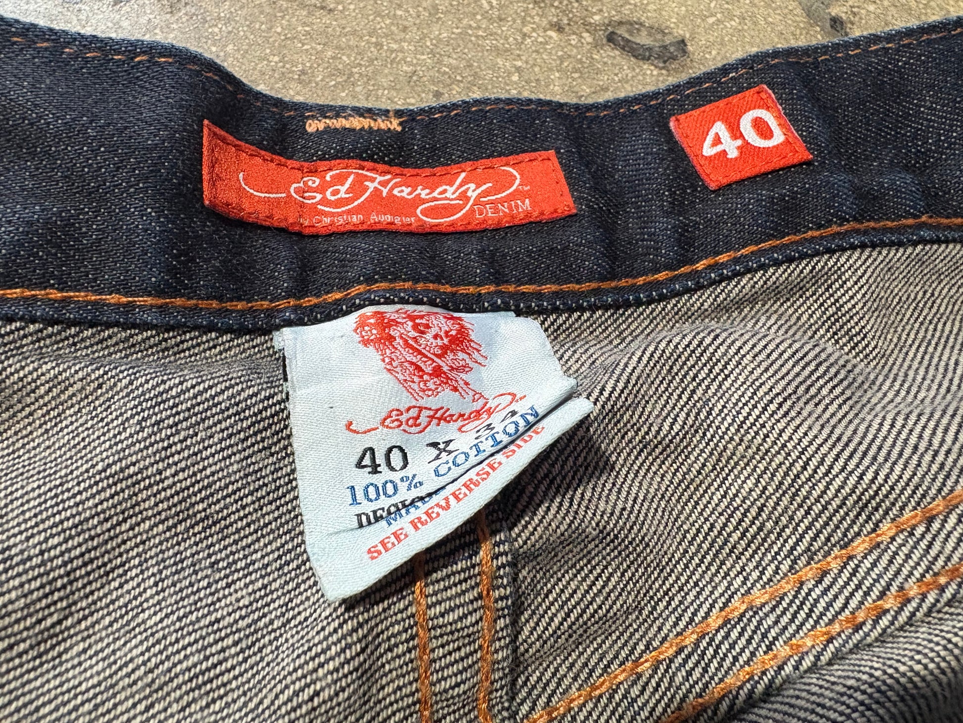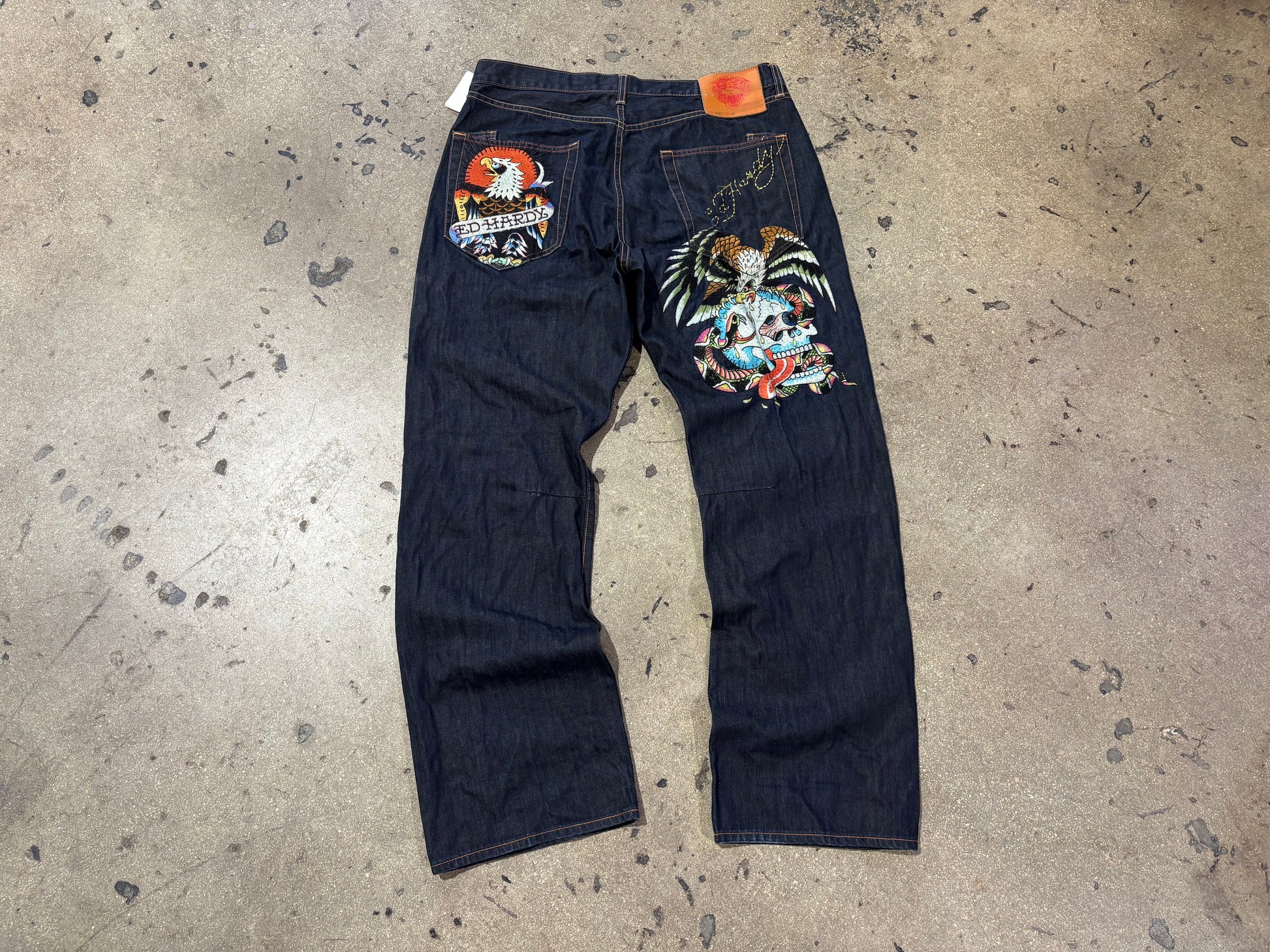 Ed Hardy Embroidered Skull & Eagle Denim Jeans - Dark Blue Size 40 x 34